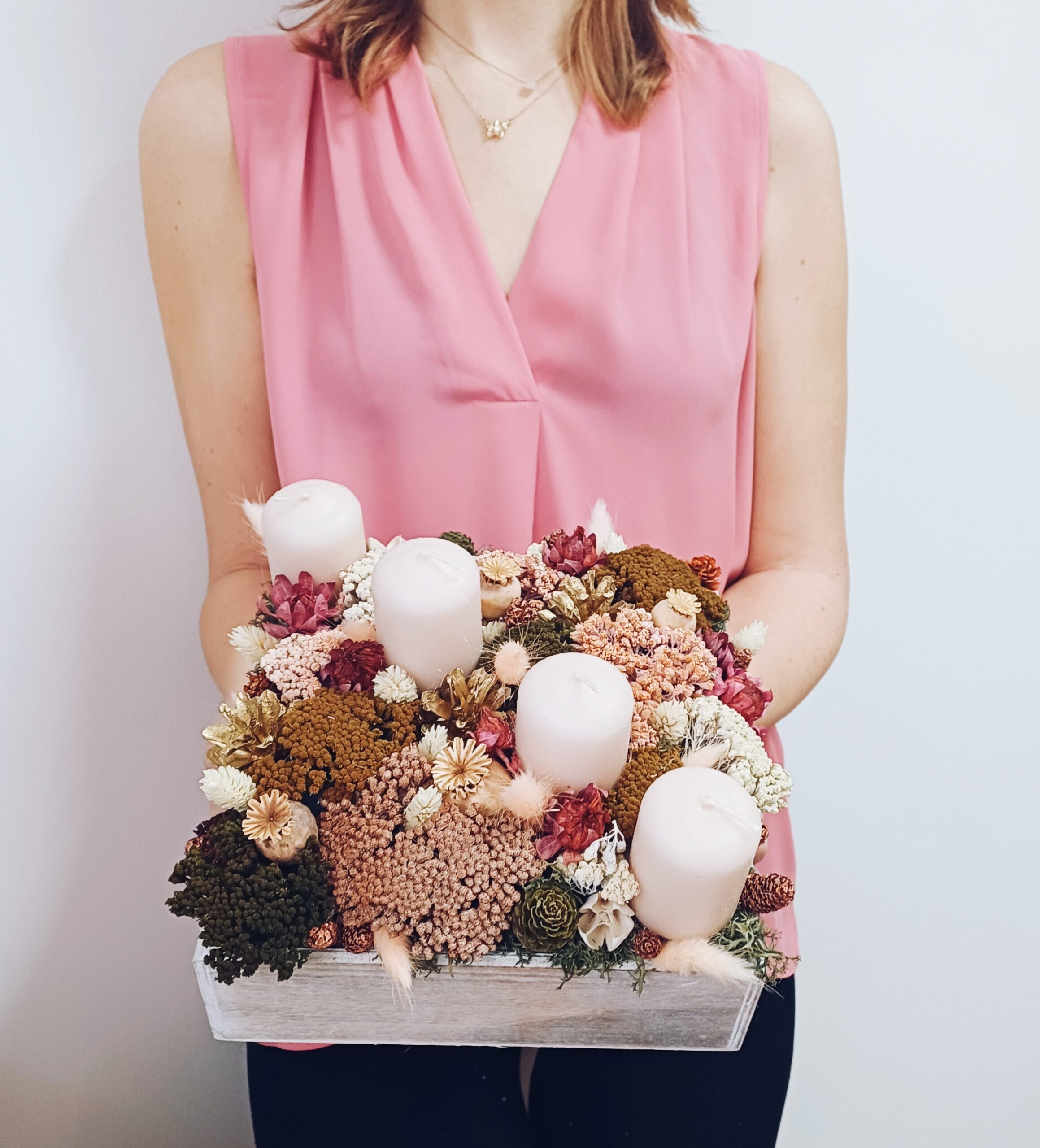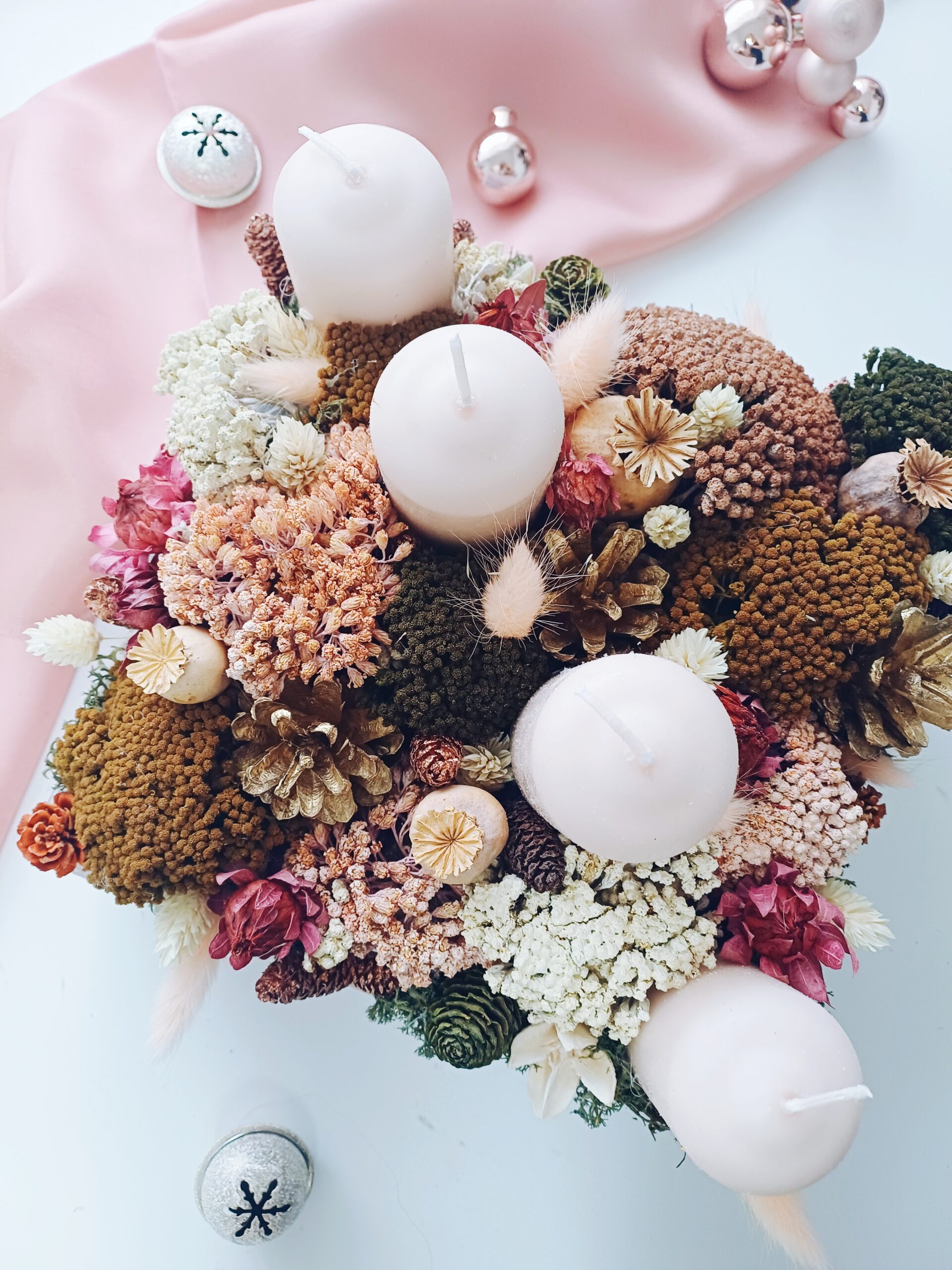 Egyedi, romantikus adventi dísz púder gyertyákkal, mely finom eleganciát varázsol az otthonodba.