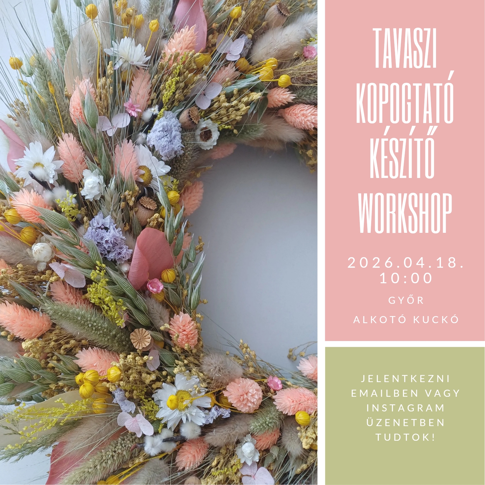 A workshop során egy gyönyörű, tavaszi hangulatú szárazvirág kopogtatót készítünk el közösen. A program során bemutatom az eszközöket, technikákat és a virágokat, majd a segítségemmel mindenki elkészítheti a saját szárazvirág karikáját.