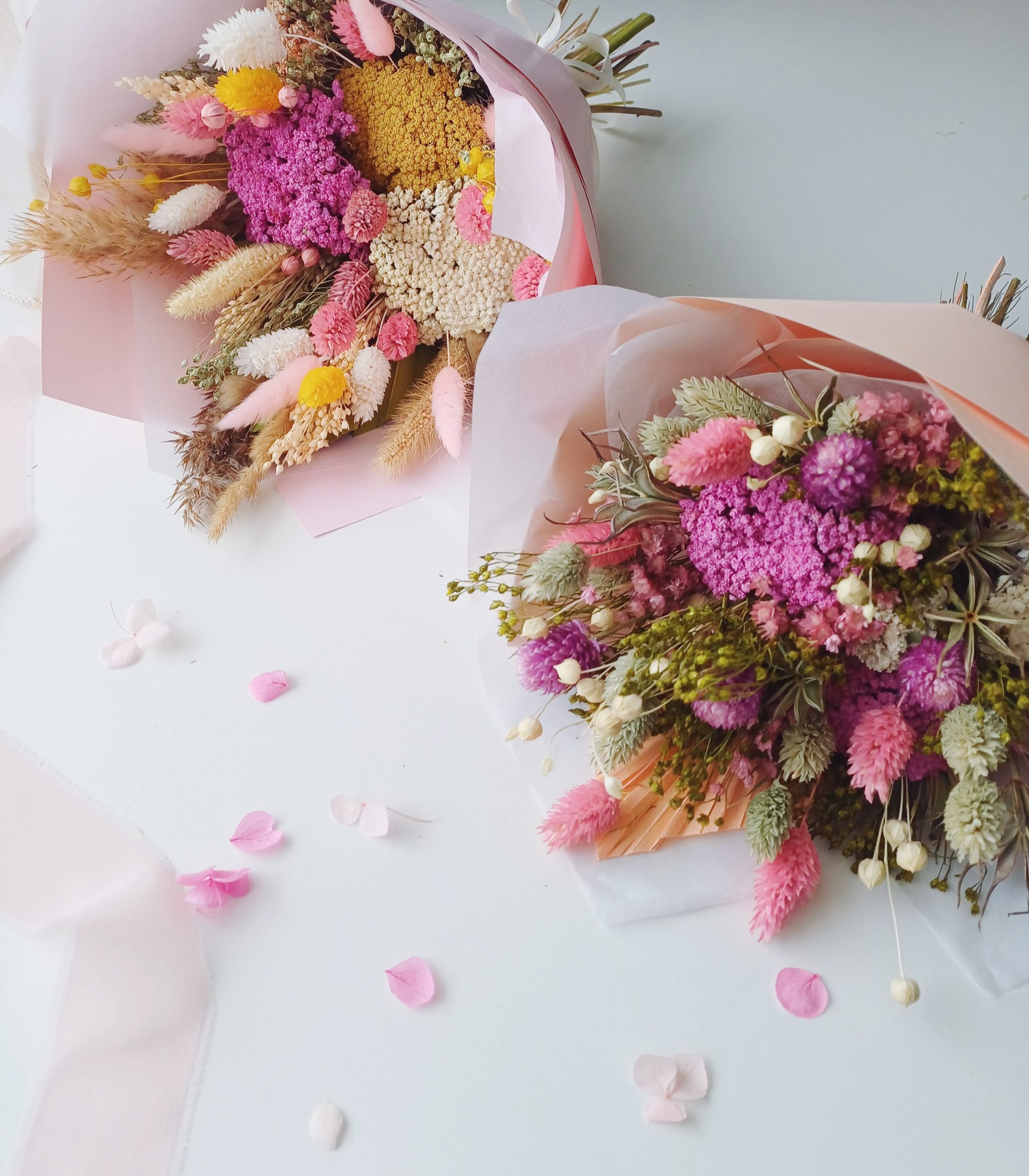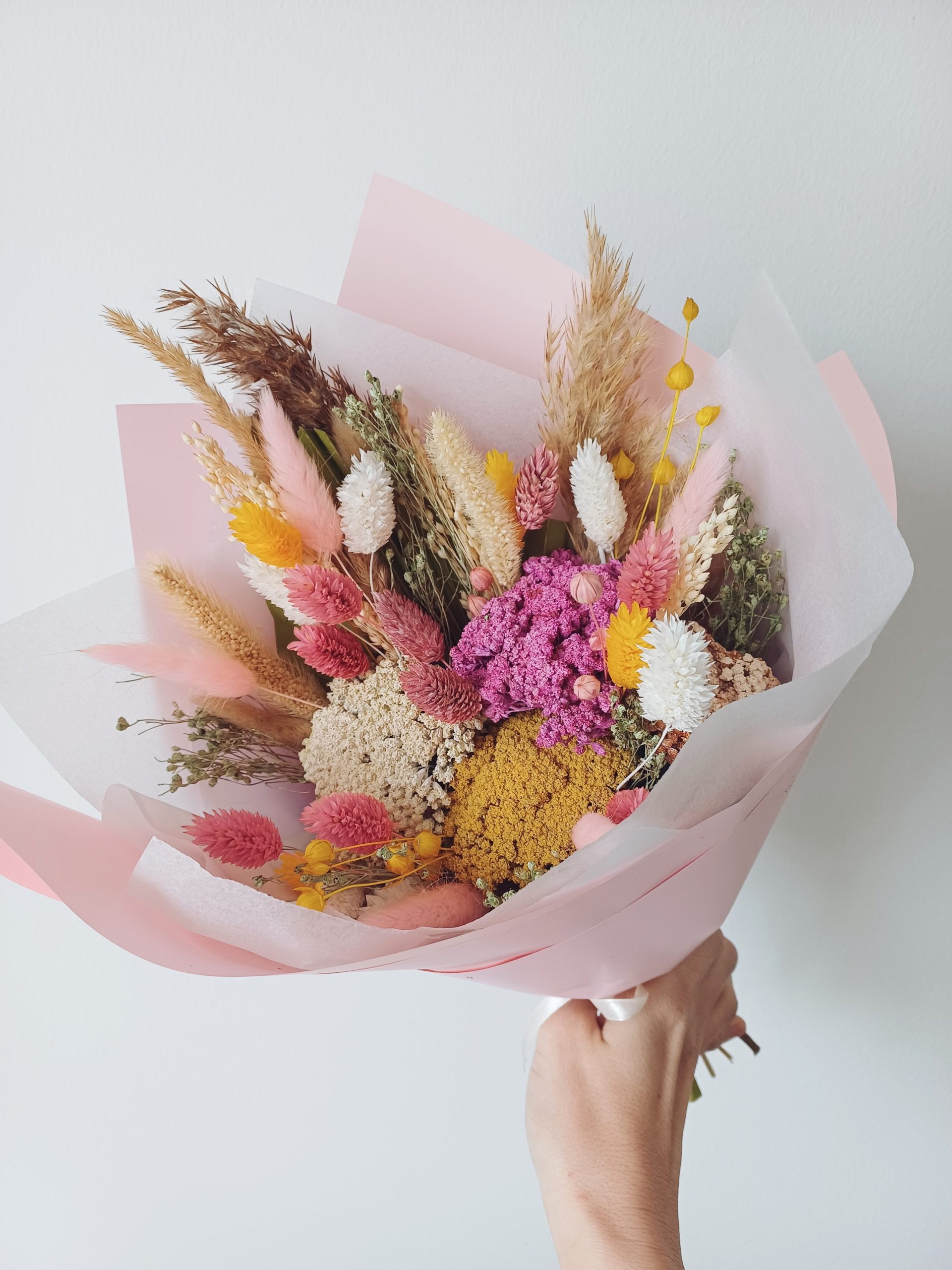 Kérlek, vedd figyelembe, hogy minden csokor egyedileg készül, így apró eltérések előfordulhatnak a felhasznált virágok tekintetében. Ez azonban nem befolyásolja a termék összhatását, méretét vagy színvilágát.